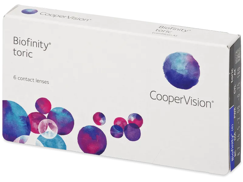 Οι Biofinity Toric είναι φακοί επαφής για τη διόρθωση του αστιγματισμού και κατασκευάζονται από την CooperVision. Το πακέτο περιέχει 6 φακούς. Αυτοί οι μαλακοί, τορικοί φακοί επαφής είναι ένα ιδιαίτερα δημοφιλές προϊόν, από την CooperVision, όχι μόνο λόγω της άνεσης και υγιεινής, αλλά και λόγω των εξαιρετικών οπτικών τους ιδιοτήτων.